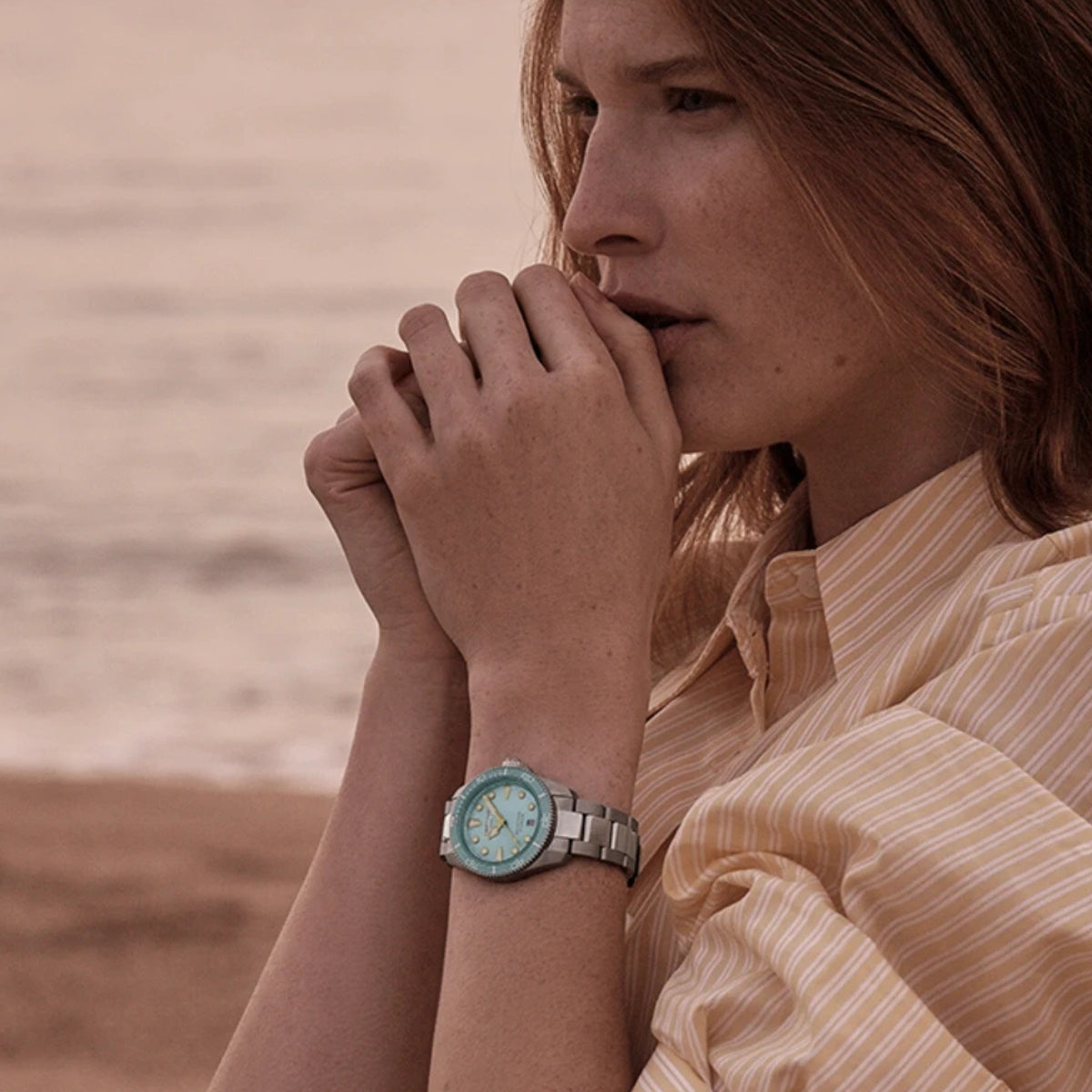 Super-LumiNova® (SLN) is a phosphorescent material. The SLN type BG W9 used by Certina emits the stored light as a bluish glow in the dark. SLN is harmless to health and is used to coat hands, indexes and bezels. Its luminosity diminishes after a while in the dark, but is automatically recharged by light.